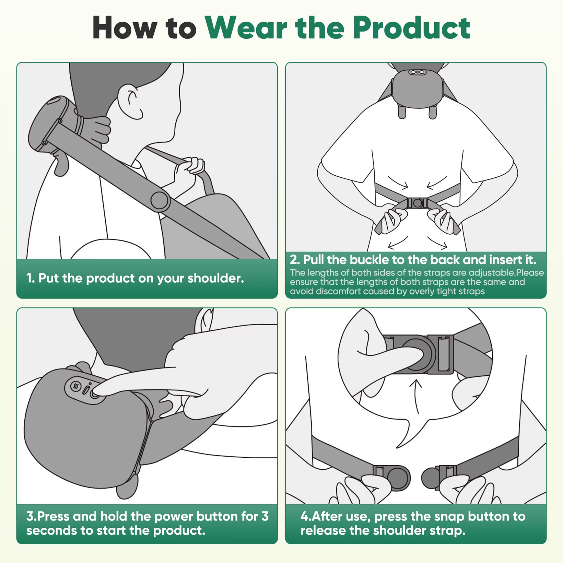 - Intelligent heating (40–45°C / 104–113℉) with 2 heat levels and 3 massage intensities, easy for all ages.